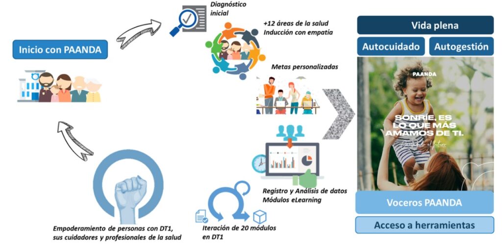 El objetivo actual de PAANDA es crear una estructura digital accesible basada en un modelo de atención multidisciplinaria. Después del diagnóstico de diabetes, las personas llegan a PAANDA se realiza un diagnóstico inicial para evaluar el nivel de conocimiento sobre DT1 del paciente y/o sus cuidadores.